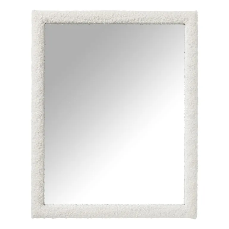De spiegel is gemaakt van bouclé stof en glas. De achterkant van de spiegel is gemaakt van MDF.