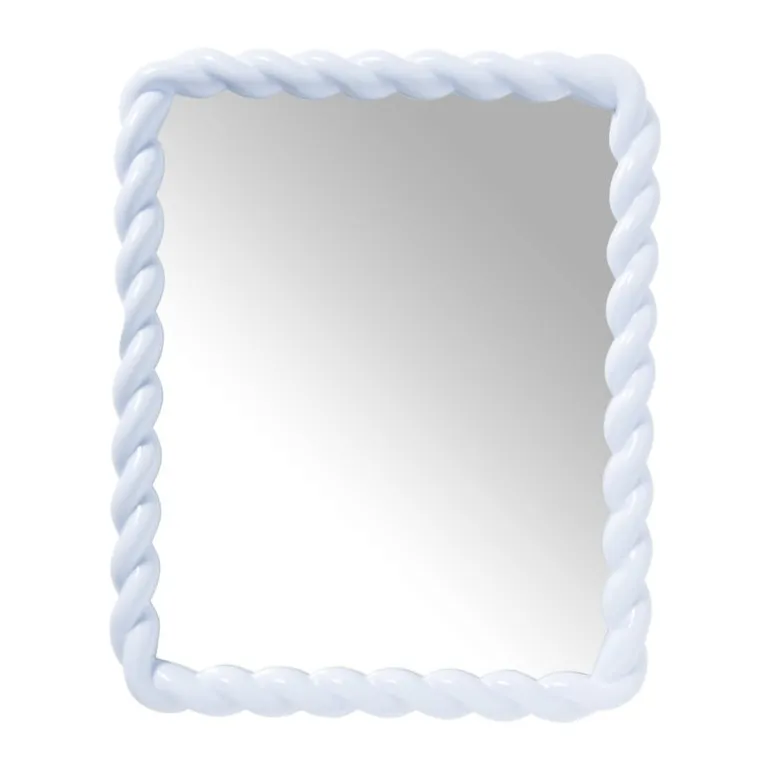 Breng een speelse touch toe aan je interieur met deze spiegel! De rechthoekige spiegel is voorzien van een opvallende lijst met een gedraaide twist-structuur. De spiegel heeft een hoogte van 53 cm, een breedte van 43 cm en een diepte van 2.5 cm en heeft een blauwe omlijsting. Hang hem in je hal voor een warm welkom, in de slaapkamer voor je ochtendroutine, of geef je woonkamer een speelse update. Kies jouw favoriete kleur en maak van deze spiegel een echte eyecatcher in jouw interieur!