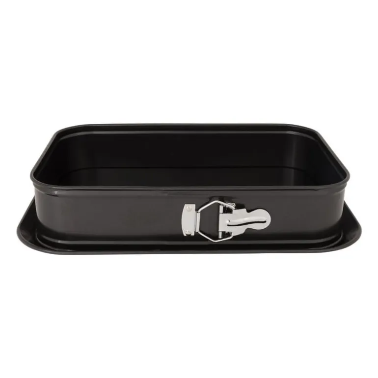 Ben jij een echte keukenprins(es)? Dan mag een goede springvorm niet ontbreken tussen jouw bakspullen. Deze rechthoekige variant is ideaal om grote taarten mee te bakken. Of wat dacht je van een heerlijke lasagne? Dankzij de grote sluiting aan de zijkant kun je de springvorm gemakkelijk open maken. Wat ga jij bakken?