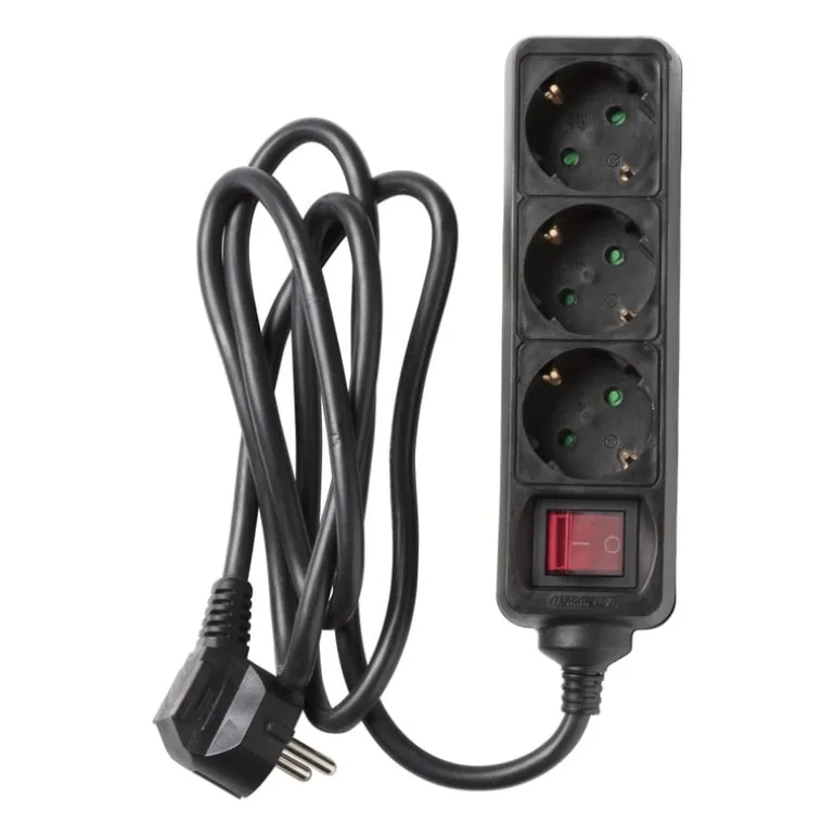Zorg voor extra aansluitmogelijkheden in huis met deze zwarte stekkerdoos met schakelaar. Deze praktische stekkerdoos biedt ruimte voor drie stekkers, zodat je eenvoudig meerdere apparaten tegelijk kunt aansluiten. De stekkerdoos heeft een compacte formaat van 5 cm hoog, 23 cm breed en 8 cm diep, wat hem perfect maakt voor gebruik in iedere ruimte, zonder al teveel plaats in te nemen. Met de handige schakelaar kun je alle aangesloten apparaten in ƩƩn keer aan- of uitschakelen, wat energie bespaart en extra veiligheid biedt. De stekkerdoos werkt op 3V, waardoor hij geschikt is voor diverse elektrische apparaten.
