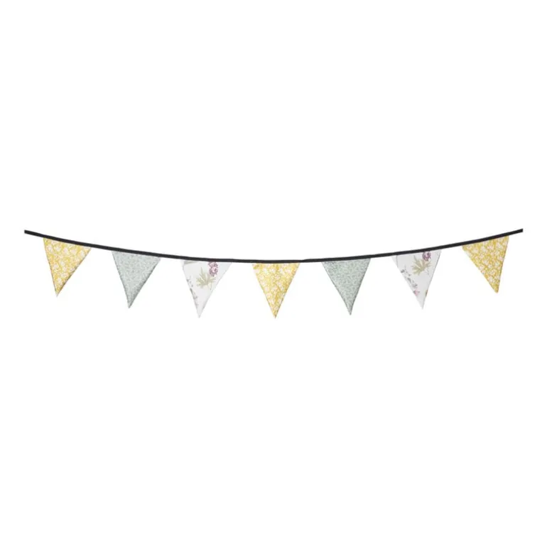 Hang zelf de slingers op! Deze stoffen vlaggenlijn kan elk jaar opnieuw gebruikt worden. Vlaggenlijnen zijn de perfecte decoratie voor allerlei feestelijke gelegenheden, zoals een verjaardag, bruiloft of jubileum. Deze vlaggenlijn met bloemenprint brengt direct sfeer en gezelligheid in elke ruimte!