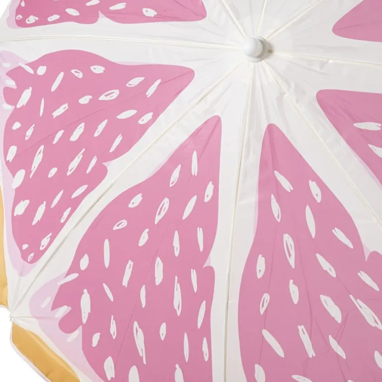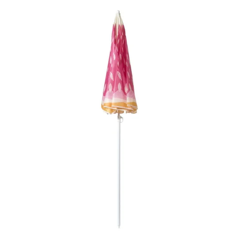 Met deze roze/oranje strandparasol zit je altijd goed in de schaduw. De vrolijke kleuren maken ‘m ideaal voor een zonnige stranddag of een zomers tuinmoment.