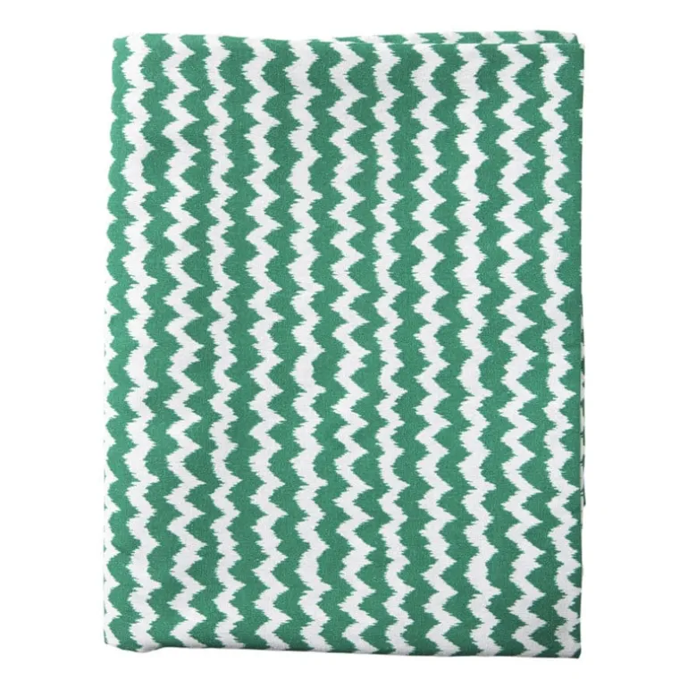 Met dit groene tafelkleed geef je je eettafel in één klap een frisse, speelse look. De grafische zigzagprint in wit en groen zorgt voor een levendig effect, zonder te overheersen. Perfect voor brunches, borrels of gewoon een doordeweekse maaltijd met stijl. Mix met kleurrijk servies of hou het rustig met natuurlijke tinten. Dit tafelkleed kan alle kanten op.