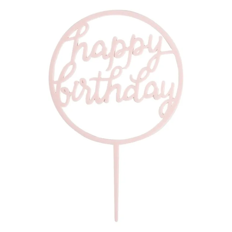Maak een taart of cake helemaal af met deze prachtige ronde cake topper met de tekst ‘Happy Birthday’ in de kleur lichtroze. Onze cake toppers zijn niet alleen super hip maar ook nog eens erg betaalbaar. De ronde cake topper Happy Birthday is 10,5 x 17 cm, licht van gewicht en herbruikbaar.