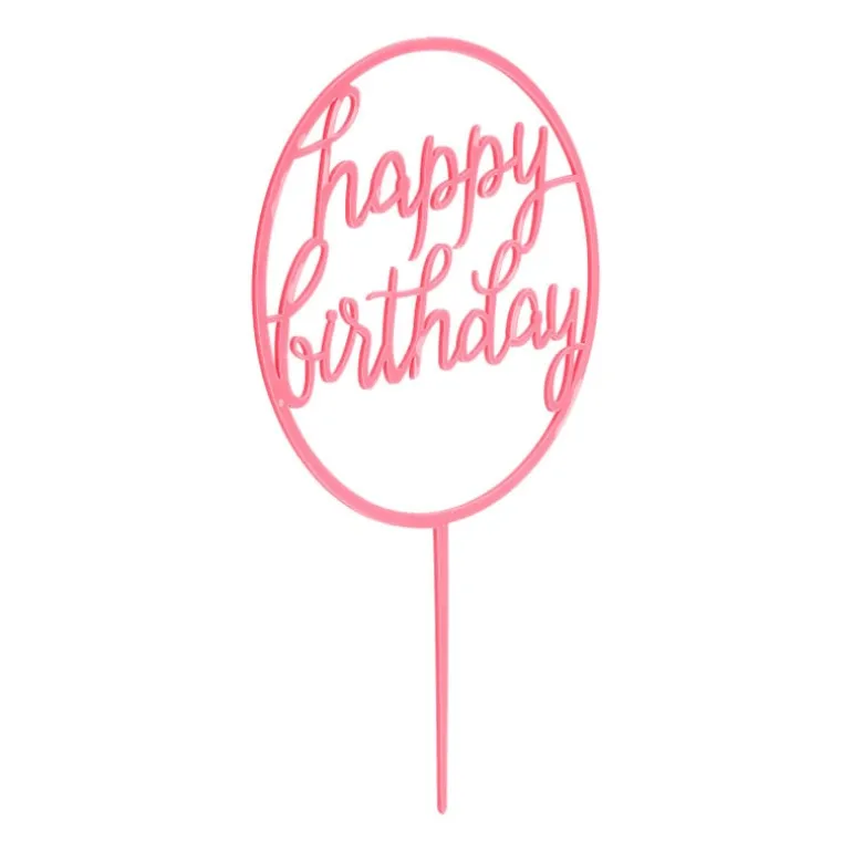 Maak een taart of cake helemaal af met deze prachtige ronde cake topper met de tekst ‘Happy Birthday’ in de kleur roze. Onze cake toppers zijn niet alleen super hip maar ook nog eens erg betaalbaar. De ronde cake topper Happy Birthday is 10,5 x 17 cm, licht van gewicht en herbruikbaar.