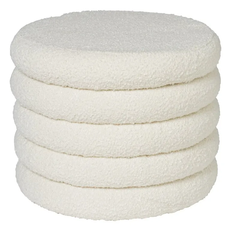 Helemaal on-trend: poefjes van bouclé stof! Deze Teddy poef is niet alleen een stijlvolle toevoeging aan je interieur, maar ook een praktische oplossing voor extra zitplaatsen en opbergruimte. Met zijn gelaagde ontwerp en zachte teddy bekleding voegt deze poef een vleugje gezelligheid toe aan elke kamer. De poef heeft 5 laagjes, waarvan de bovenste laag een deksel is. Wat ga jij hierin opbergen, je plaids of het speelgoed?