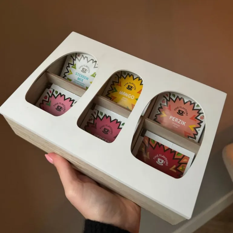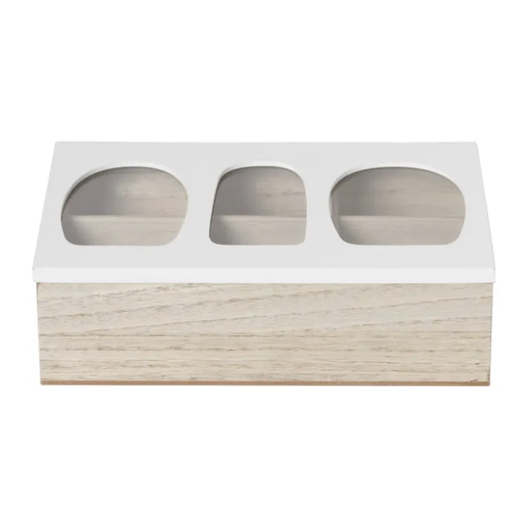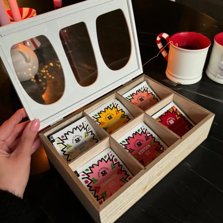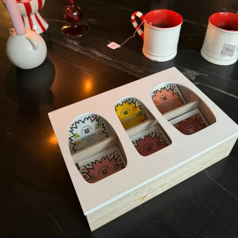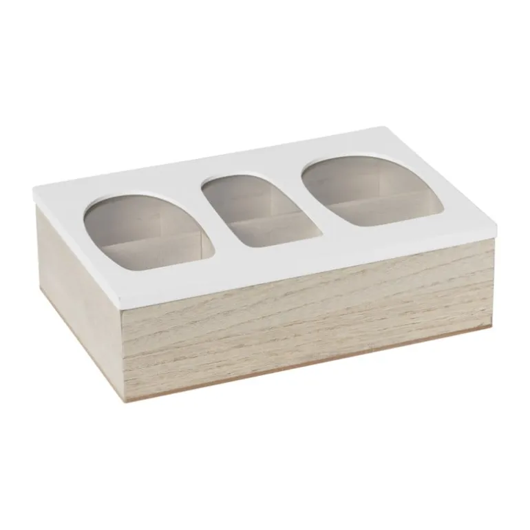 Organiseer je theezakjes in stijl met deze organische theedoos! Met 6 handige vakken biedt de theedoos ruimte voor al je favoriete theezakjes. Het natuurlijke ontwerp van de deksel en de stijlvolle afwerking met het houten materiaal zorgen ervoor dat je je thee op een elegante manier kunt bewaren. Perfect voor elke theeliefhebber die zijn collectie mooi en overzichtelijk wil houden.
