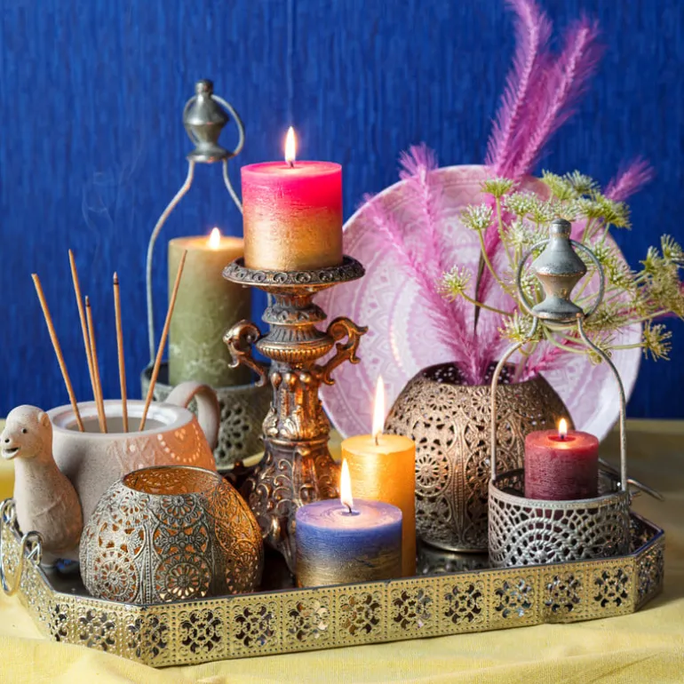 Creëer een mysterieuze, warme sfeer met deze theelichthouder. Een uitstekende woondecoratie voor in de slaap- of woonkamer. De bolle lichthouder heeft een antieke uitstraling door het bewerkte materiaal.