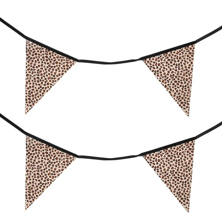 Hang deze vlaggetjes op als het tijd is voor een feestje of als je gewoon heel veel van luipaard print houdt. De slinger bestaat uit papieren vlaggetjes met een leopard print.
