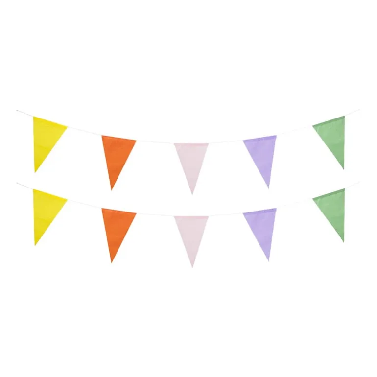 Met deze kleurige vlaggenlijn ben je ‘ready to go’ voor dikke party! Hang de vlaggen op in de woonkamer en het ziet er meteen feestelijk uit. De vlaggenlijn is gemaakt van papier en heeft een lengte van 10 meter met verschillende kleuren vlaggetjes.