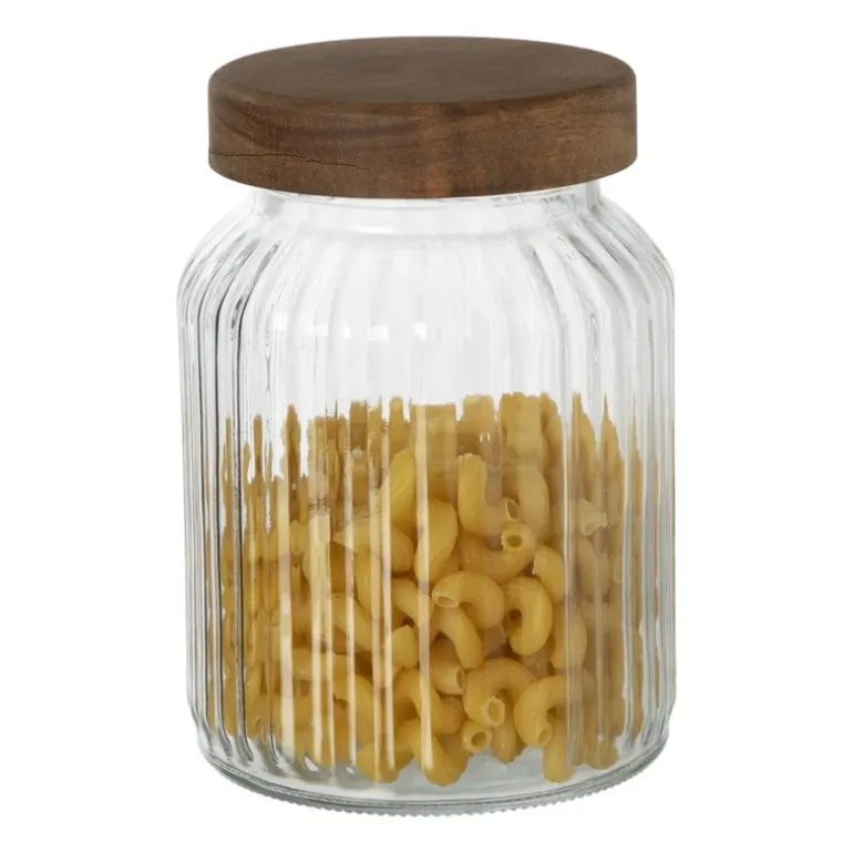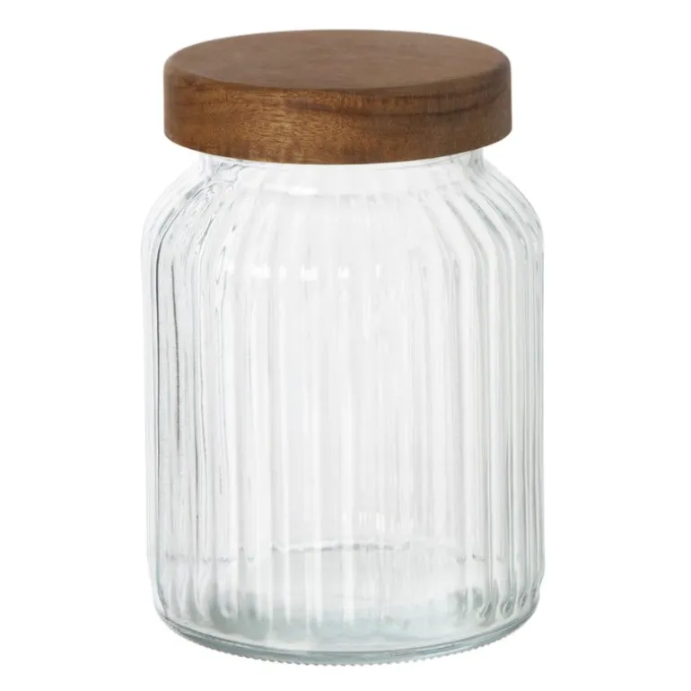 Voeg een vleugje stijl toe aan je keuken met deze prachtige opbergpot. Met een diameter van 11 cm en een hoogte van 16 cm is deze pot perfect voor het organiseren van kleine spullen, zoals kruiden, snoep, pasta of andere ingrediënten. De ribbelstructuur voegt een moderne touch toe en het acacia deksel zorgt voor een warme, natuurlijke uitstraling.
