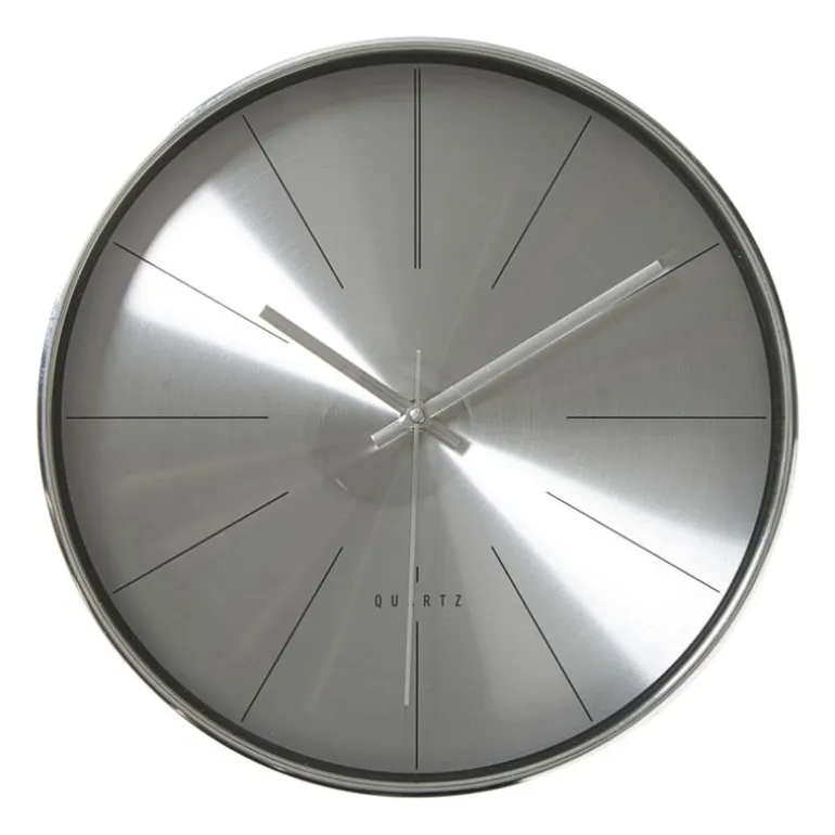 Strak en tijdloos: deze zilverkleurige wandklok past in elk interieur. Met een formaat van Ø30.5×4.3 cm combineert hij eenvoud met stijl.