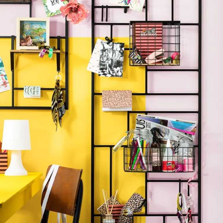 Tip: koop een aantal mandjes en plankjes om aan het rek te hangen. Ook leuk met plantjes!