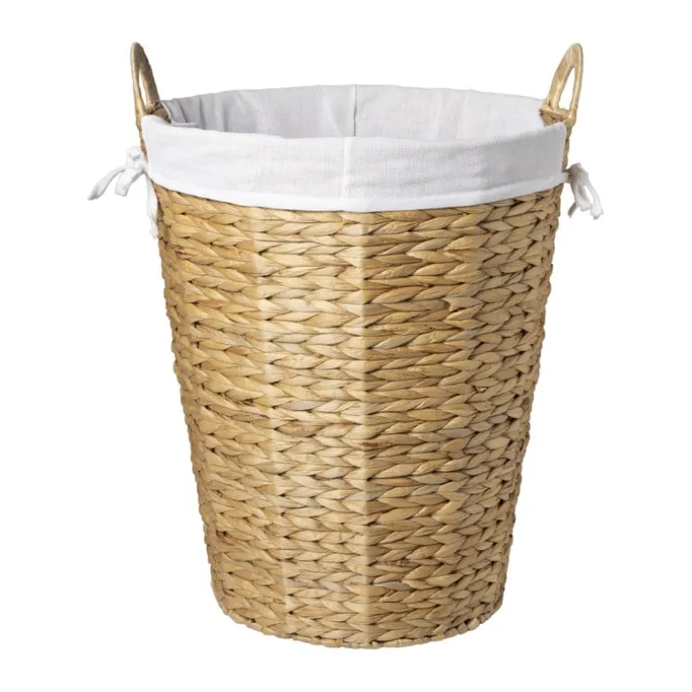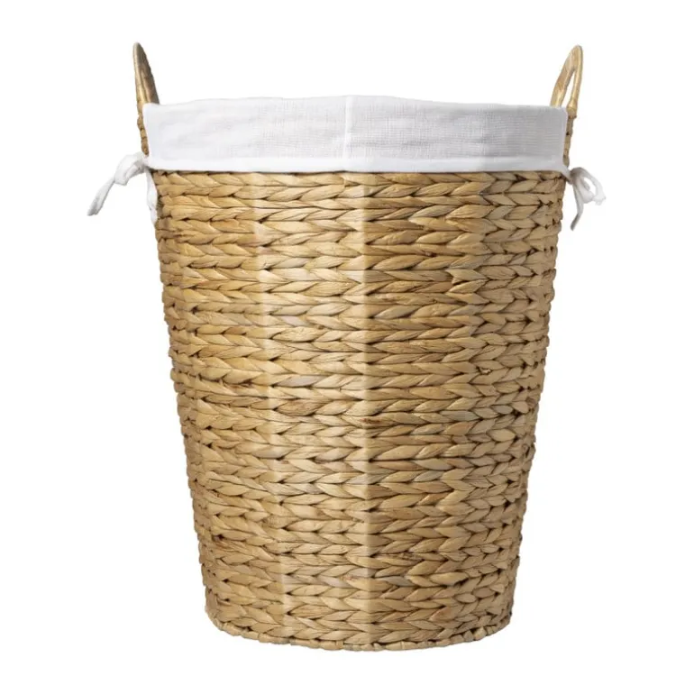 De wasmand is gemaakt van riet en de binnenhoes is gemaakt van polyester. De wasmand heeft een diameter van 42 cm en een hoogte van 50 cm.
