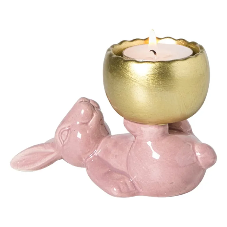 Breng warmte en stijl in je paas interieur met deze elegante waxinelichthouder. Het schattige haasontwerp, gecombineerd met de verfijnde roze en goudkleurige afwerking, maakt dit een perfecte decoratie voor Pasen en het voorjaar. De waxinelichthouder is gemaakt van dolomiet. Met een hoogte van 8.5 cm, een breedte van 13 cm en een diepte van 6.5 cm is deze waxinelichthouder compact genoeg om te plaatsen op een tafeltje, vensterbank of als onderdeel van een paasarrangement. Steek een waxinelichtje aan voor een warme en gezellige sfeer in je huis.
