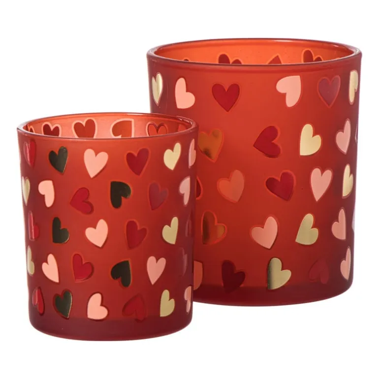 Klein maar sfeervol! Deze set van twee theelichthouders met hartjesmotief zorgt voor een romantisch lichtje in huis. Leuk voor op tafel, in de badkamer of op een dienblad met andere accessoires.
