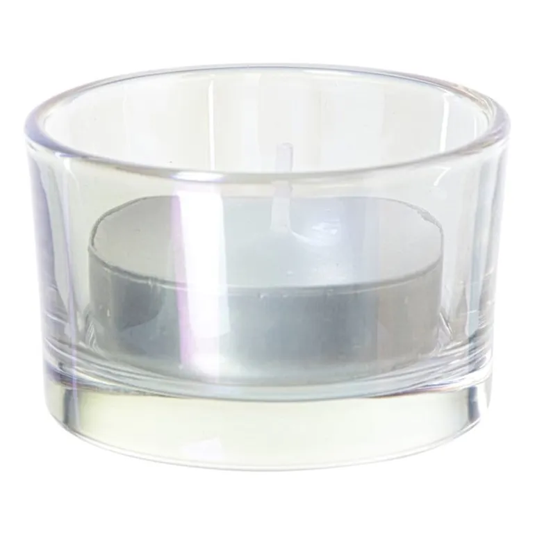 Deze iriserende theelichthouder zorgt voor een magisch lichteffect in je interieur. De glanzende, parelmoerachtige afwerking reflecteert het licht in verschillende kleuren, afhankelijk van de invalshoek. Dit maakt de theelichthouder een echte eyecatcher, perfect voor een sfeervolle tafelsetting, een knusse avond of als decoratief accent in huis.