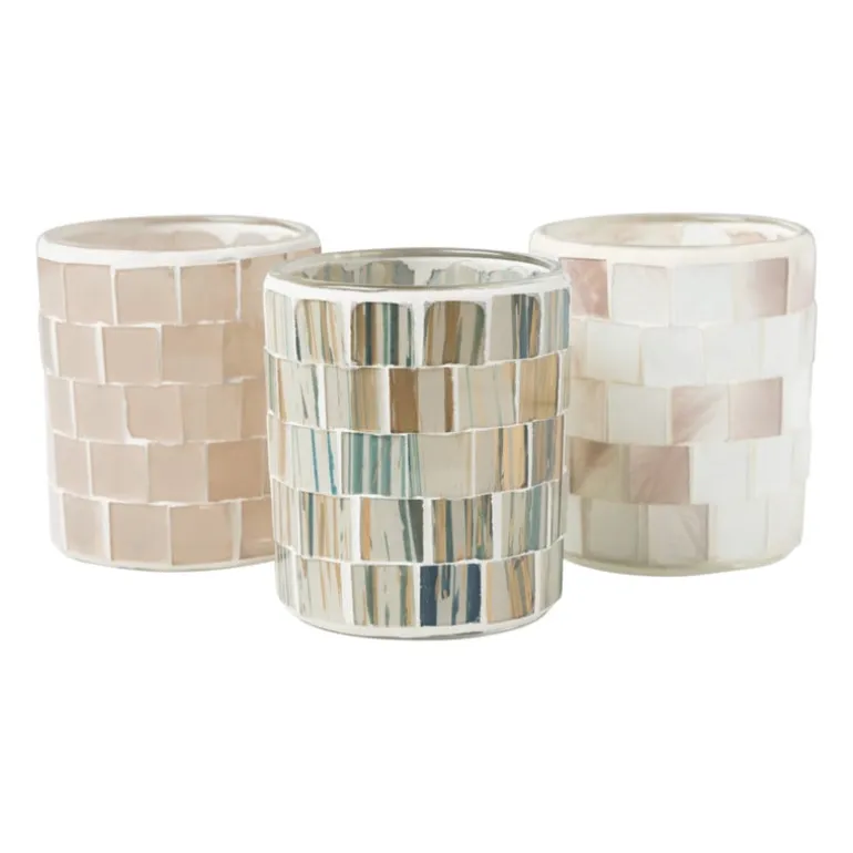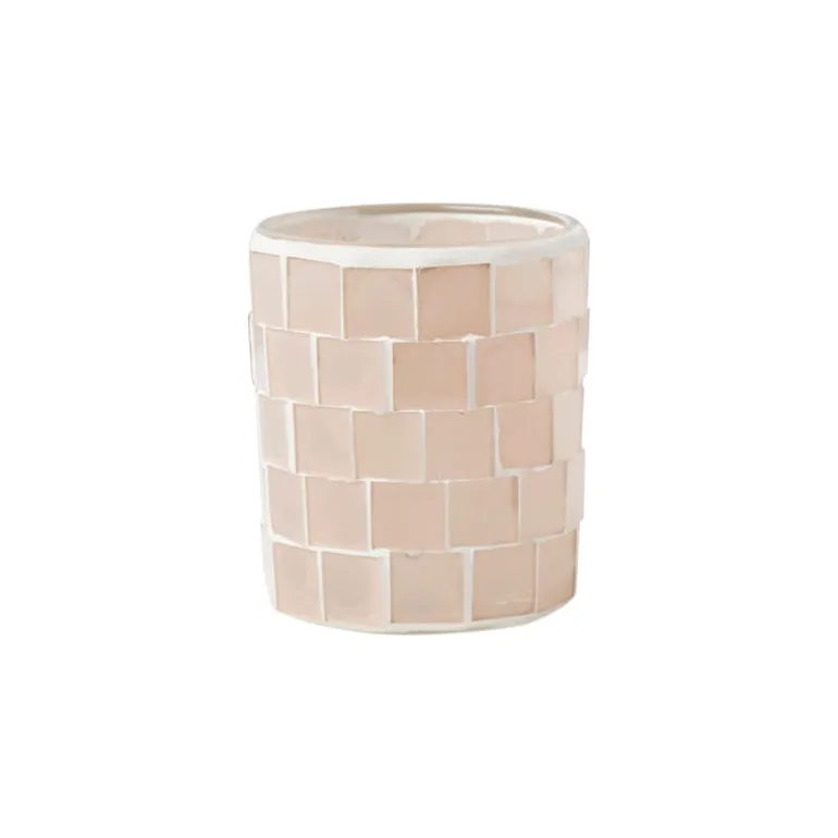 Deze waxinelichthouder met mozaïek is een sfeervolle toevoeging aan jouw interieur. Plaats een waxinelichtje in de houder en zie hoe het licht door diverse kleuren van het mozaïek danst. Een prachtig lichteffect! De waxinelichthouder heeft een beige kleur, is gemaakt van glas en heeft een doorsnede van 7.3 cm en een hoogte van 8.5 cm.