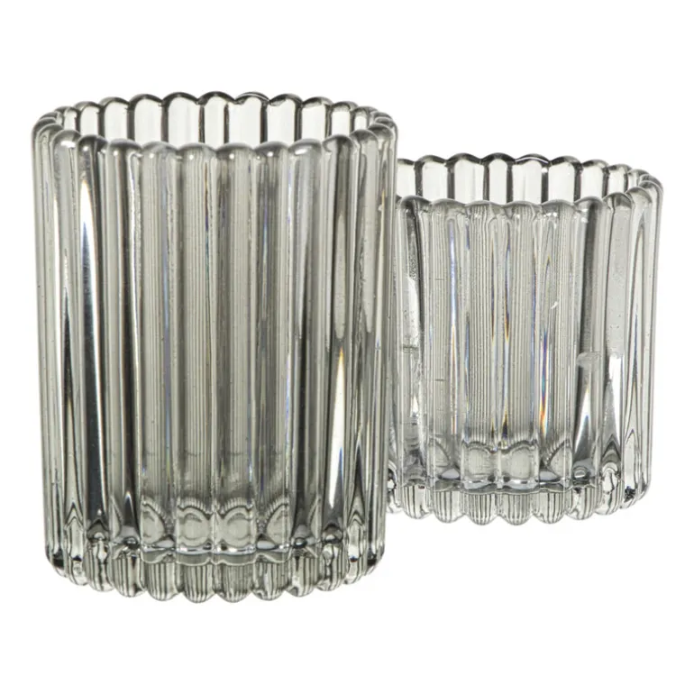 Klein maar fijn: deze theelichthouder met ribbelstructuur in stijlvol zwart is de perfecte sfeermaker voor elk hoekje van je huis. Steek er een theelichtje in en geniet van het warme, gezellige licht dat door het geribbelde glas schijnt. Instant sfeerboost! Het subtiele ribbelpatroon geeft ‘m nét dat beetje extra, terwijl de zwarte kleur zorgt voor een chique touch. Perfect voor op een dienblad, op tafel of als sfeervol accent op een plankje.