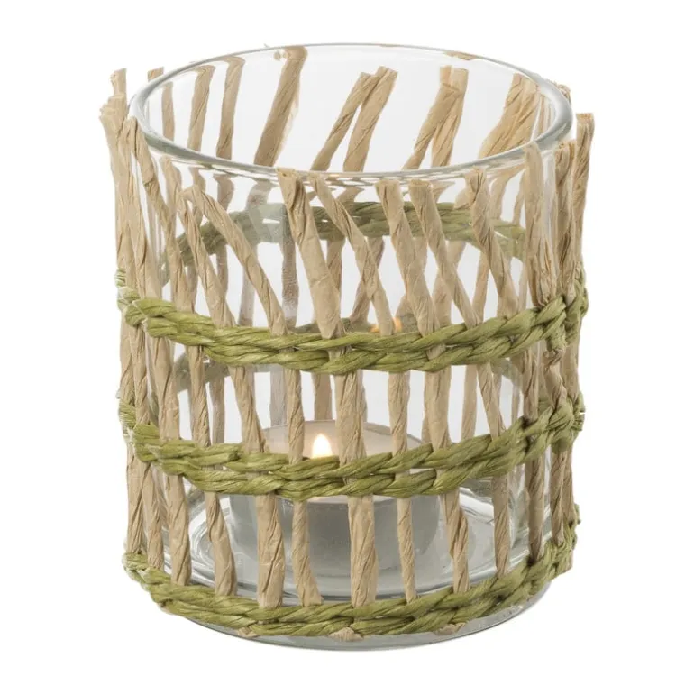 Breng een warme en natuurlijke sfeer in huis met deze waxinelichthouders van gevlochten riet. Het handgeweven riet zorgt voor een unieke uitstraling en past perfect bij zowel bohemian als moderne stijlen. Plaats een waxinelichtje in de houder en geniet van een gezellige gloed die elke ruimte tot leven brengt. Dankzij het compacte formaat zijn ze ideaal voor op een bijzettafel, dressoir of als onderdeel van een tafeldecoratie. Combineer meerdere kleuren voor een speels effect of houd het simpel met een enkele houder. De waxinelichthouder is gemaakt van riet en glas en heeft een diameter van 8 cm en een hoogte van 9 cm.