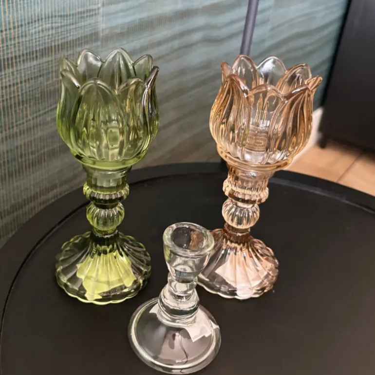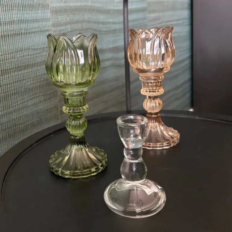 Creëer een warme sfeer in huis met deze prachtige glazen waxinelichthouder in de vorm van een tulp. Met een doorsnede van 7.8 cm en een hoogte van 14 cm is deze waxinelichthouder ideaal voor het plaatsen van een waxinelichtje. Zet ‘m op een bijzettafeltje, vensterbank of eettafel en geniet van het warme, zachte licht dat hij verspreidt. De mooie afwerking van het glas zorgt voor een sfeervolle uitstraling en reflecteert het licht op een prachtige manier. Dus of je nu een romantisch diner organiseert, een gezellige avond met vrienden plant of gewoon een ontspannen sfeer wilt creëren na een lange dag, deze waxinelichthouder is de perfecte keuze. De waxinelichthouder is okergeel van kleur en ook verkrijgbaar in het groen.