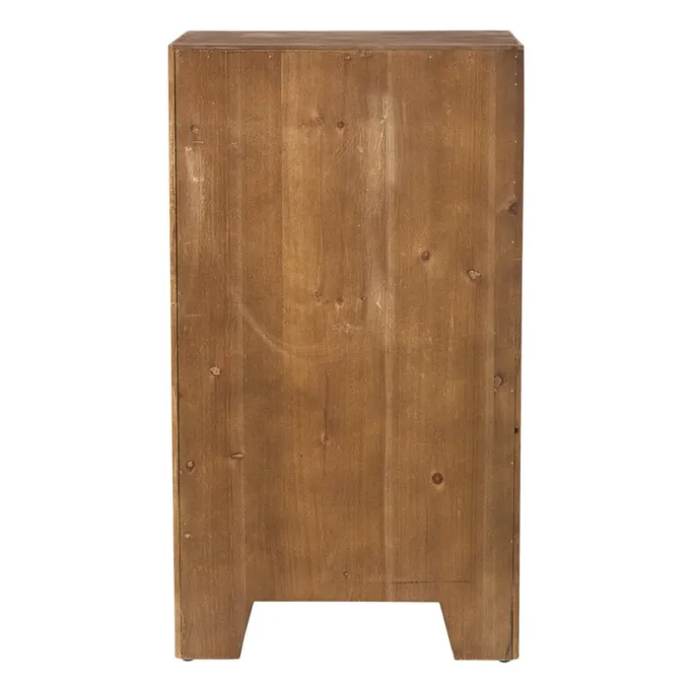 Dit webbing nachtkastje uit de Bandung serie combineert functionaliteit met stijl. De warme bruine kleur en het speelse webbing patroon maken het een echte eyecatcher naast je bed. Dankzij het compacte formaat en de plank in het midden biedt het nachtkastje genoeg ruimte voor een lamp, boeken en andere essentials, terwijl de gesloten opbergruimte je spullen uit het zicht houdt. De deuren met webbing panelen zorgen niet alleen voor een speelse look, maar laten de inhoud van de kast subtiel doorschemeren. Perfect voor een bohemian, Scandinavisch of retro interieur.