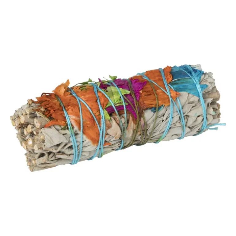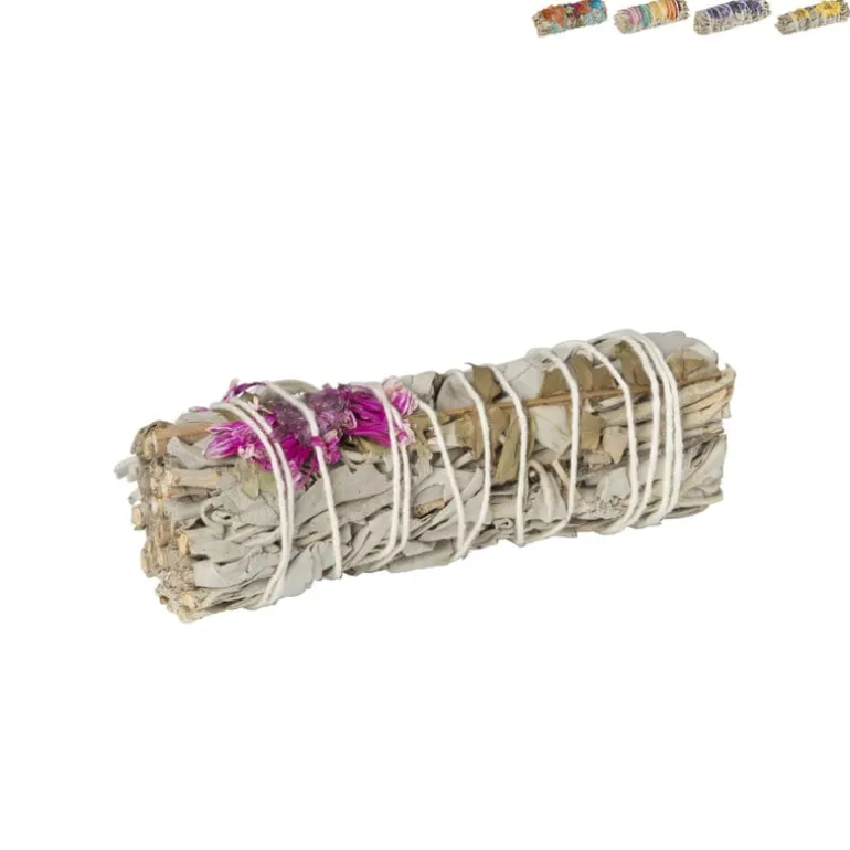 Het wierook bosje is gemaakt van salie en bloemen en verspreid een heerlijke geur door heel het huis. Het bosje is 3.2 cm hoog, 10 cm breed en 3.5 cm diep. Ontspan en geniet van de frisse geur.