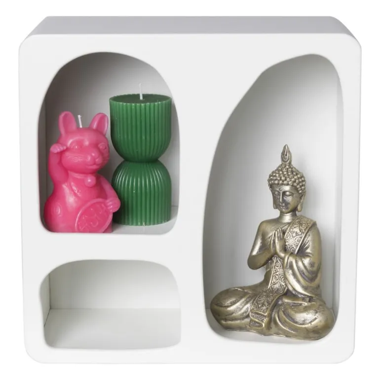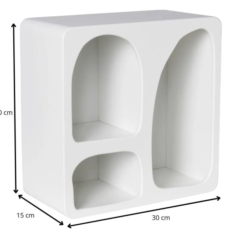 Stijlvol en functioneel: dat is deze 3 vakkenkast Zaha! Door zijn eigentijdse ontwerp en zijn witte kleur is deze vakkenkast een echte eyecatcher. Decoreer de kast met fotolijstjes, kaarsen of planten. Je kunt de vakkenkast aan de muur hangen of ergens in je interieur plaatsen.