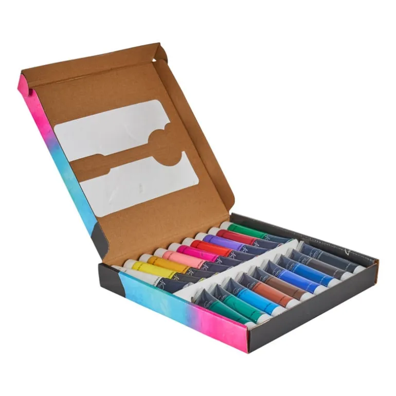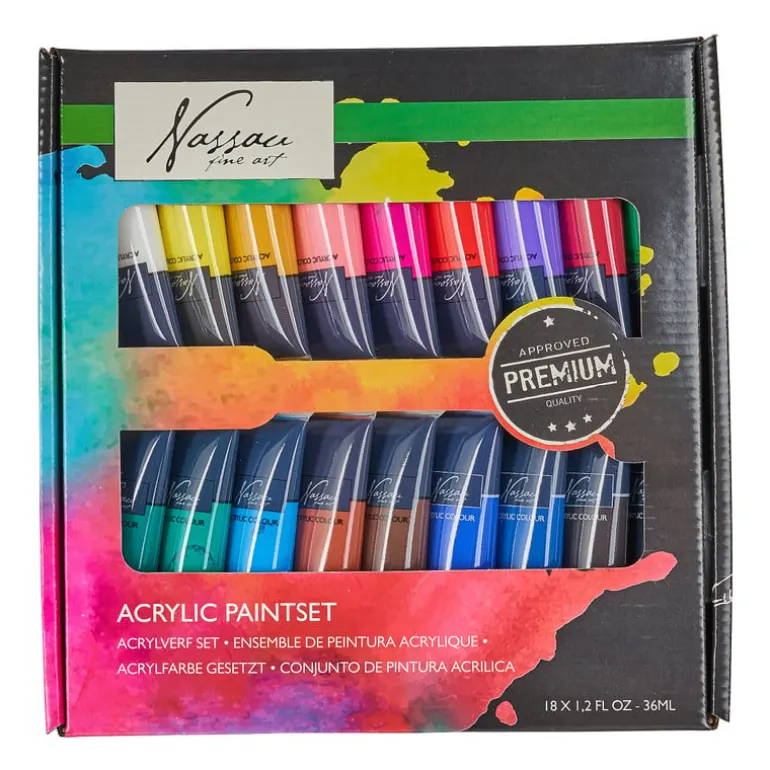 Laat je creativiteit de vrije loop met deze set van acrylverf. De set bevat 18 verschillende kleuren. De kleuren hebben een inhoud van 36 ml per stuk. Schud de verf voor gebruik en jij kan beginnen aan je schilderij!