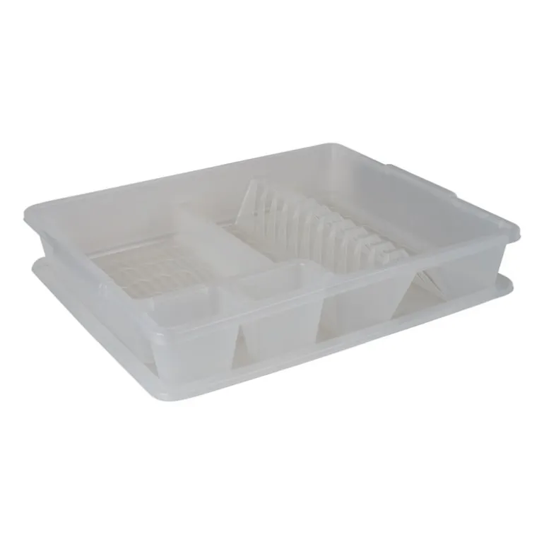 Aan het afwassen? Zet de schone vaat in dit afdruiprek zodat niet het hele aanrecht nat wordt. Dit afdruiprek is gemaakt van kunststof en heeft een witte kleur.