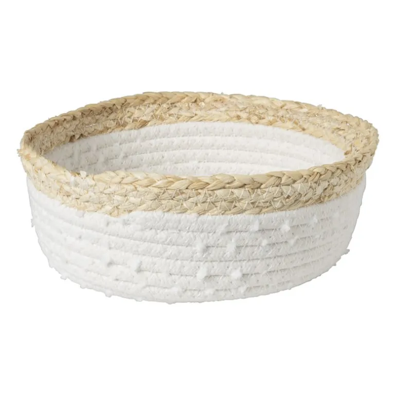 Houd je badkamer netjes en overzichtelijk met deze jute mandjes. De set bestaat uit 3 jute mandjes met een witte rand. De mandjes bieden een praktische opbergoplossing voor je beauty producten en het is tegelijkertijd een stijlvolle, warme toevoeging voor je badkamer.