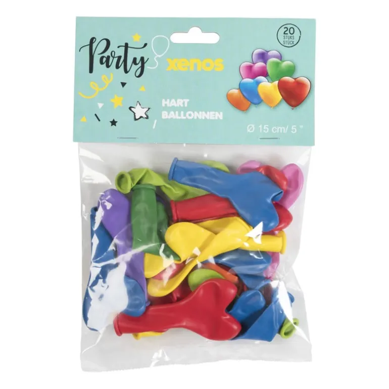 Met deze vrolijk gekleurde ballonen in de vorm van een hartje is het altijd feest! De multikleur ballonen zijn gemaakt van natuurlijk rubberlatex. In de verpakking zitten 20 stuks.