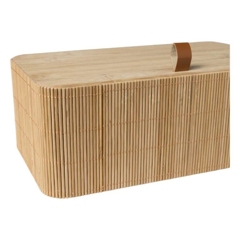 Bamboe kistje Jesse is perfect voor het organiseren van kleine spulletjes, sieraden of om je ruimte netjes te houden. Dankzij het compacte formaat past het kistje gemakkelijk op elke plank, bureau of dressoir. Het lichte, neutrale design past moeiteloos in elke kamer, of het nu de badkamer, slaapkamer of keuken is. Het deksel zorgt ervoor dat je spullen stofvrij blijven en geeft een vleugje elegantie aan het geheel. Het kistje is 10 cm hoog, 27 cm breed en 15.5 cm diep.