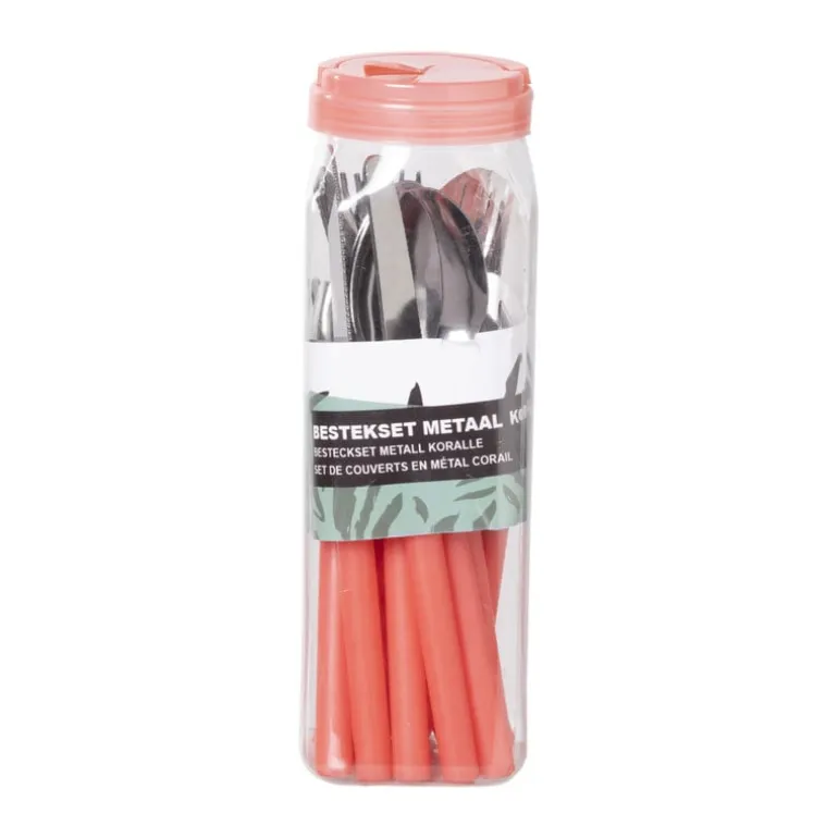 Maak je eettafel compleet met de elegante metalen bestekset in de kleur koraal! Deze set, bestaande uit 16 stuks, biedt alles wat je nodig hebt voor een stijlvolle en praktische maaltijd. De mooie koraalkleurige handgrepen voegen een frisse, moderne uitstraling toe aan je servies, terwijl de stevige metalen bladen zorgen voor langdurig gebruik.