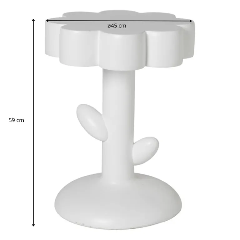 Deze bijzettafel is een speelse toevoeging aan elke woon- of slaapkamer. Met zijn opvallende ontwerp in de vorm van een bloem is deze tafel een echte eye-catcher. Deze bijzettafel is alleen geschikt voor binnenshuis gebruik.