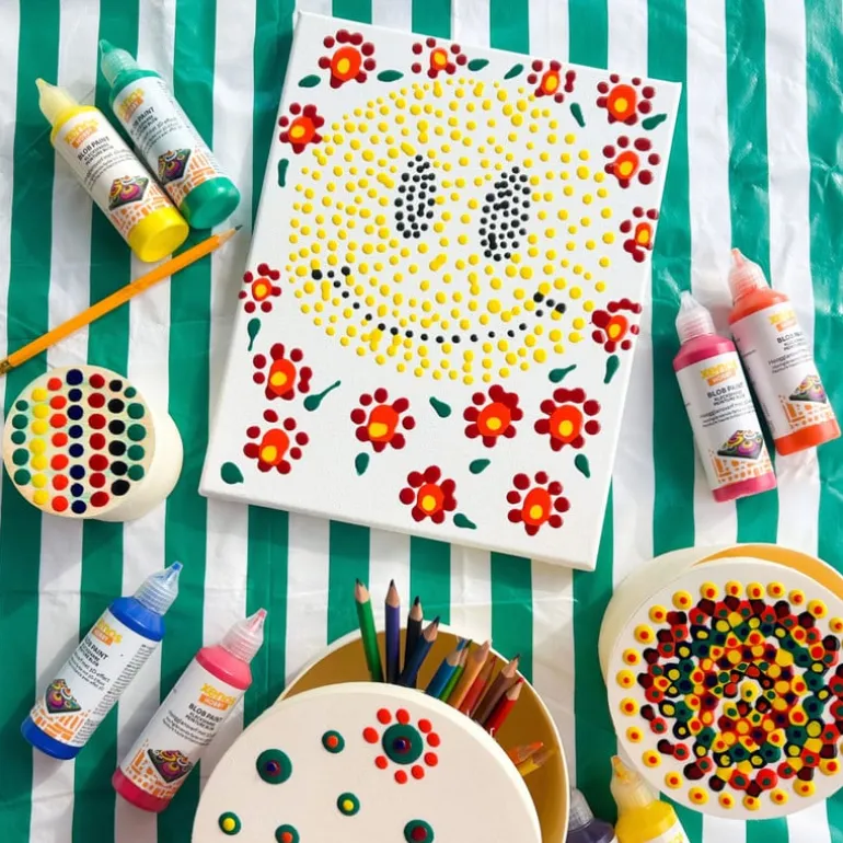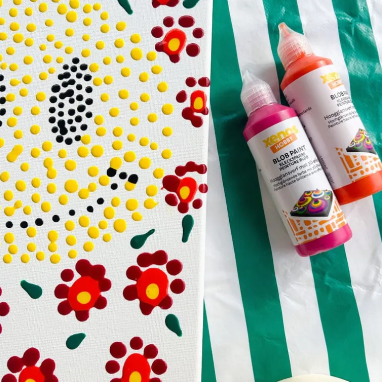 Blob verf is geschikt voor gebruik op verschillende oppervlakken, waaronder papier, karton, canvas, hout en zelfs stof. Het is een leuke en veelzijdige manier om creatief bezig te zijn en kunstwerken te maken met een unieke uitstraling. De verf geeft mooie cirkels en vloeit niet in elkaar over. Ga nat op nat te werk of laat elke laag een tijdje drogen voor een 3D-effect.