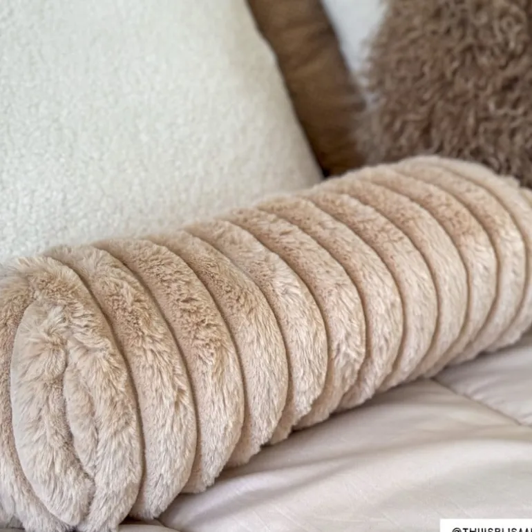Dit heerlijke bolster kussen wil je hebben. Het beige kussen met unieke ribstructuur past perfect in vrijwel ieder interieur. Combineer ‘m met andere zachte kussens en een heerlijk warm plaid voor ultieme comfort. Het bolster kussen is gemaakt van polyester en heeft een doorsnede van 15 cm en een breedte van 45 cm, wat het kussen perfect maakt voor op de bank, in je favoriete fauteuil of als decoratieve eyecatcher op je bed. Het kussen is aan de voor- en achterkant hetzelfde en is niet voorzien van een ritssluiting. Het kussen is niet wasbaar, kleine vlekken kunnen worden verwijderd met een vochtige doek.