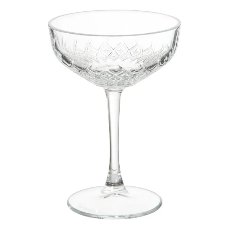 Helemaal klaar voor oud & nieuw of iets anders leuks te vieren? Een glaasje champagne drink je het liefst uit deze chique champagnecoupe. Het glas is transparant maar valt op door het mooie motief. Hij staat perfect op je mooi gedekte tafel. Oliebollen, mooi servies en gouden bestek erbij en je avond kan niet meer stuk. Het champagneglas heeft een inhoud van 255 ml en is vaatwasmachine bestendig. Het glas is ook te gebruiken voor andere drankjes of voor het serveren van heerlijke voor- en nagerechtjes.