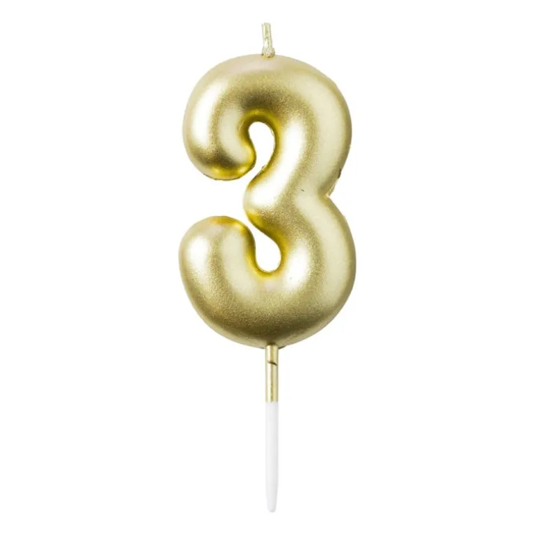 Decoreer een taart, cake of ander lekkernij met deze gouden cijferkaars! Laat de jarige de kaars uitblazen en een wens doen. Perfect om iemand op zijn verjaardag te verrassen of als een toevoeging bij het versieren van je gebak. De kaarsen hebben een gouden kleur. Deze cijferkaars is 4.6 cm hoog, 2.8 cm breed en 0.8 cm diep.