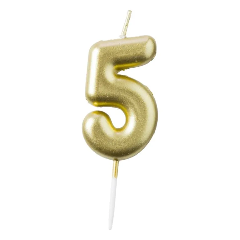Decoreer een taart, cake of ander lekkernij met deze gouden cijferkaars! Laat de jarige de kaars uitblazen en een wens doen. Perfect om iemand op zijn verjaardag te verrassen of als een toevoeging bij het versieren van je gebak. De kaarsen hebben een gouden kleur. Deze cijferkaars is 4.6 cm hoog, 2.8 cm breed en 0.8 cm diep.