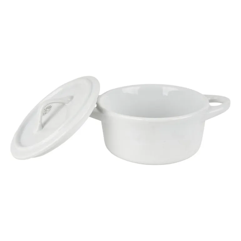 Gebruik deze mini cocotte voor een heerlijk stoofpotje. De kleine cocotte is perfect voor het serveren van eenpersoons stoofgerecht. Denk aan het bekende oeufs en cocotte recept uit Frankrijk of een lekker gerecht met ei, kip of groenten. Het pannetje is gemaakt van porselein en voorzien van handgreepjes en een deksel. De cocotte staat stijlvol op de tafel waardoor het je gerecht direct uit de pan kan serveren. De diameter is 10 cm.