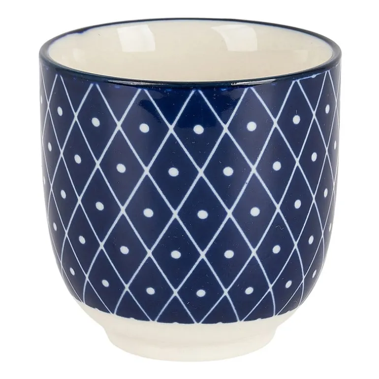 Deze beker is een waardige toevoeging aan jouw servies collectie. Het is perfect te gebruiken voor het drinken van thee of het serveren van tapas hapjes. De cup een blauwe print en het is verkrijgbaar in diverse dessins. Mix & match naar je eigen smaak!