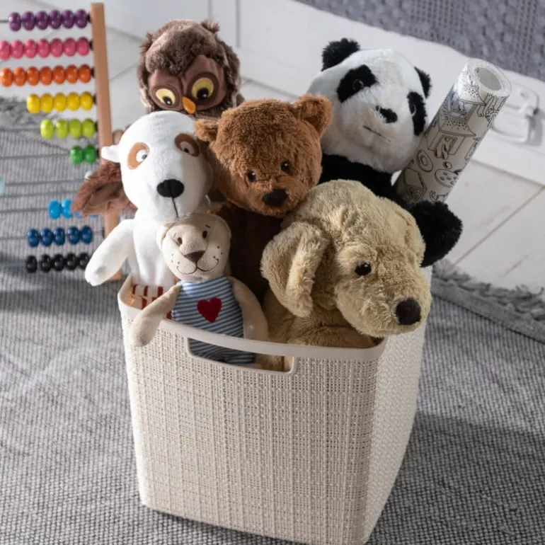 Deze opbergmand combineert stijl en functionaliteit. De mand is gemaakt van duurzaam kunststof met een jute-achtige textuur, waardoor hij niet alleen mooi is om naar te kijken, maar ook nog eens stevig en gemakkelijk schoon te maken is. De manden zijn geïnspireerd op handgemaakt textiel en gemaakt van meer dan 70% gerecyclede kunststof, wat zorgt voor een authentieke, natuurlijke uitstraling. Of je deze opbergmand nu in de badkamer, slaapkamer of wasruimte plaatst, het zal zeker een stijlvolle en praktische aanvulling zijn op je interieur.