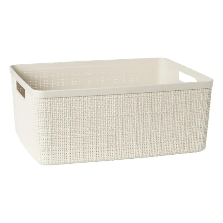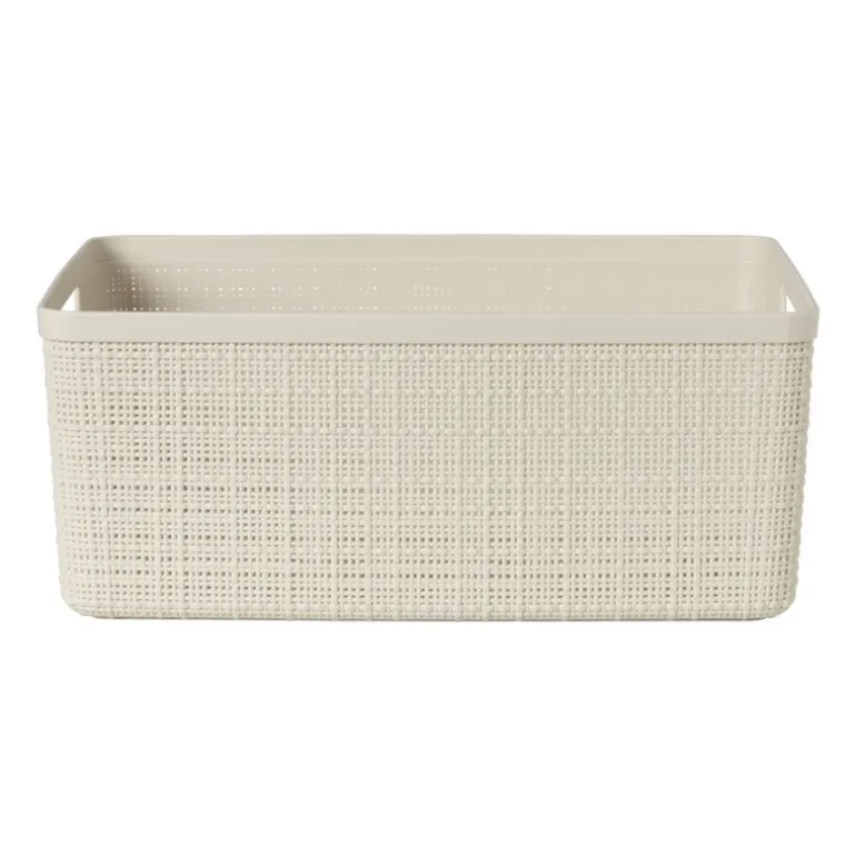 Deze opbergmand combineert stijl en functionaliteit. De mand is gemaakt van duurzaam kunststof met een jute-achtige textuur, waardoor hij niet alleen mooi is om naar te kijken, maar ook nog eens stevig en gemakkelijk schoon te maken is. De manden zijn geïnspireerd op handgemaakt textiel en gemaakt van meer dan 70% gerecyclede kunststof, wat zorgt voor een authentieke, natuurlijke uitstraling. Of je deze opbergmand nu in de badkamer, slaapkamer of wasruimte plaatst, het zal zeker een stijlvolle en praktische aanvulling zijn op je interieur.