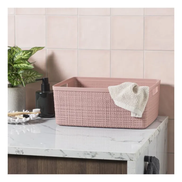 Deze opbergmand combineert stijl en functionaliteit. De mand is gemaakt van duurzaam kunststof met een jute-achtige textuur, waardoor hij niet alleen mooi is om naar te kijken, maar ook nog eens stevig en gemakkelijk schoon te maken is. De manden zijn geïnspireerd op handgemaakt textiel en gemaakt van meer dan 70% gerecyclede kunststof, wat zorgt voor een authentieke, natuurlijke uitstraling. Of je deze opbergmand nu in de badkamer, slaapkamer of wasruimte plaatst, het zal zeker een stijlvolle en praktische aanvulling zijn op je interieur.