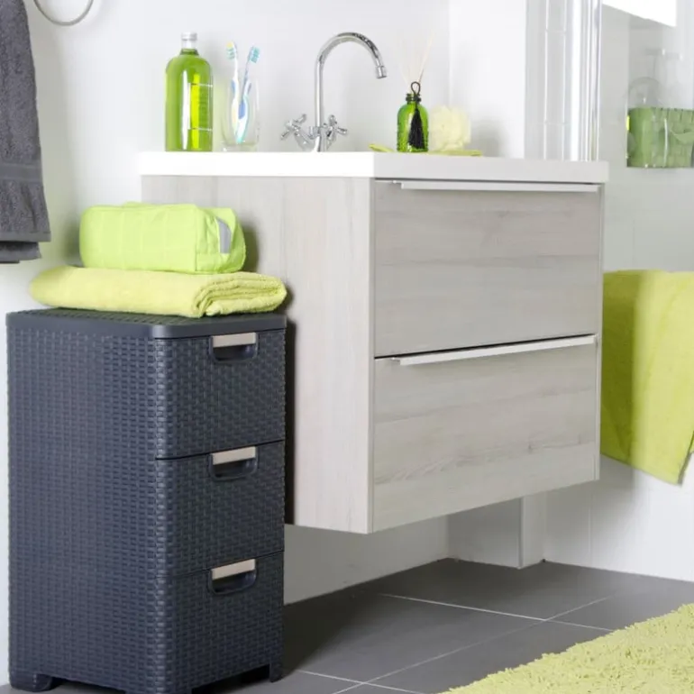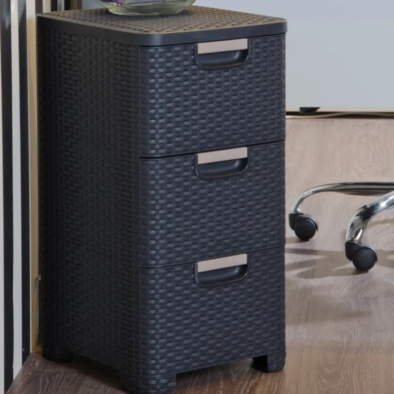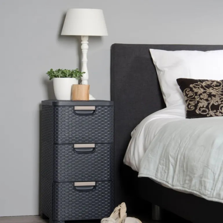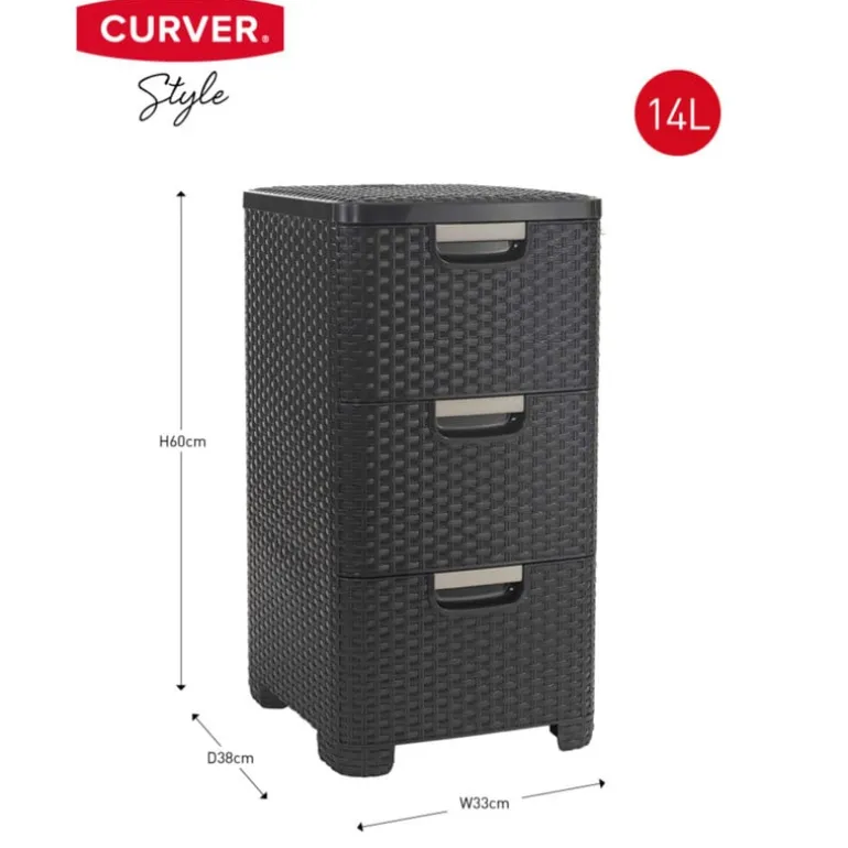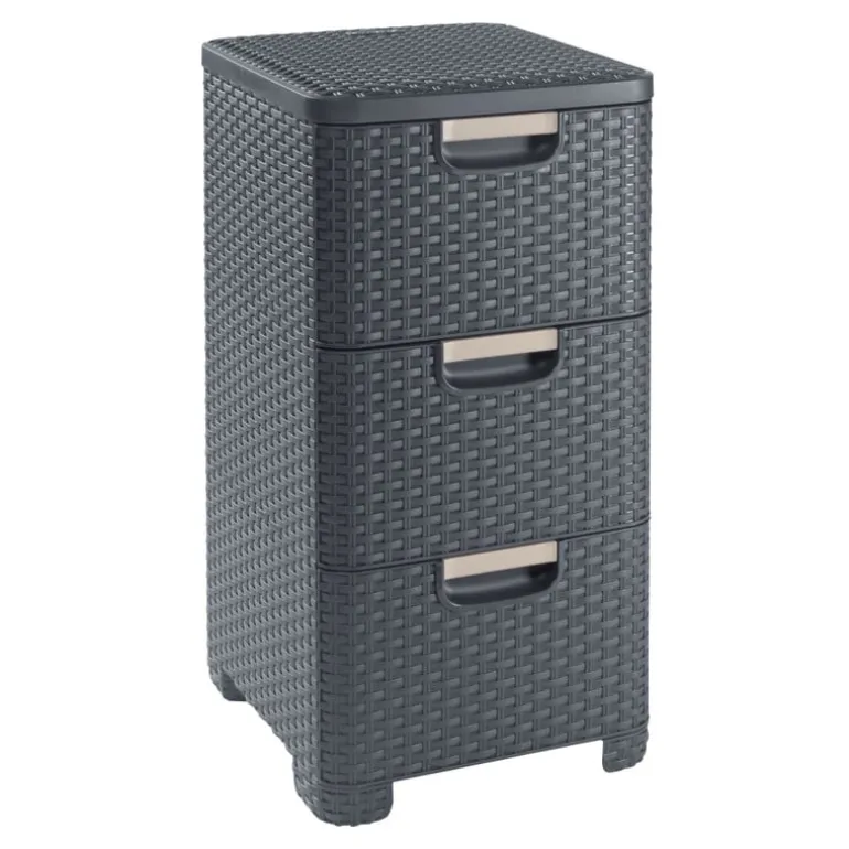 Opgeruimd staat netjes – zeker met dit Curver ladeblok! Met drie ruime lades biedt dit kunststof opbergsysteem plek voor al je papieren, knutselspullen, kabeltjes of keukengerei. De grijze rotan-look geeft ‘m een stijlvolle uitstraling, waardoor je ‘m gerust in het zicht kunt laten staan. Dankzij het compacte formaat past dit blok moeiteloos onder je bureau, in een kast of in de bijkeuken, of kan zelfs dienen als nachtkastje. Lichtgewicht, stevig en makkelijk schoon te maken. Opruimen was nog nooit zo eenvoudig én zo netjes.