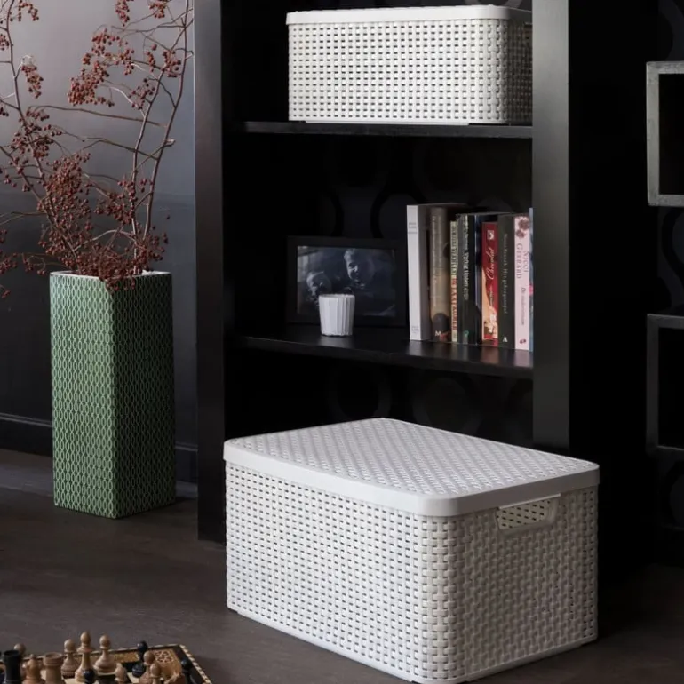 Deze middelgrote opbergmand van Curver is ideaal voor alles wat rondslingert in huis. Denk aan huishoudspullen, speelgoed of extra voorraad. De stijlvolle vlechtstructuur geeft een luxe look, terwijl de stevige deksel zorgt voor een opgeruimde uitstraling. De opbergboxen zijn voorzien van een vlechtstructuur die lijkt op natuurlijke materialen. Ze hebben de uitstraling van riet maar de voordelen van kunststof: eenvoudig te reinigen en gemakkelijk in gebruik. De opbergmanden hebben een handvat aan beide kanten en een deksel. Ook zijn de opbergmanden gemaakt van 70% gerecycled kunststof.