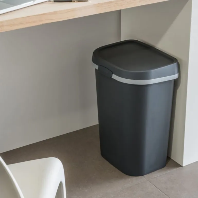 Klein van stuk, groots in gebruik! Deze mistral flat prullenbak van 25 liter is perfect voor kleinere ruimtes zoals het toilet, de badkamer of kantoor. Voorzien van een goed sluitend klapdeksel en volledig gemaakt van 100% gerecycled plastic.