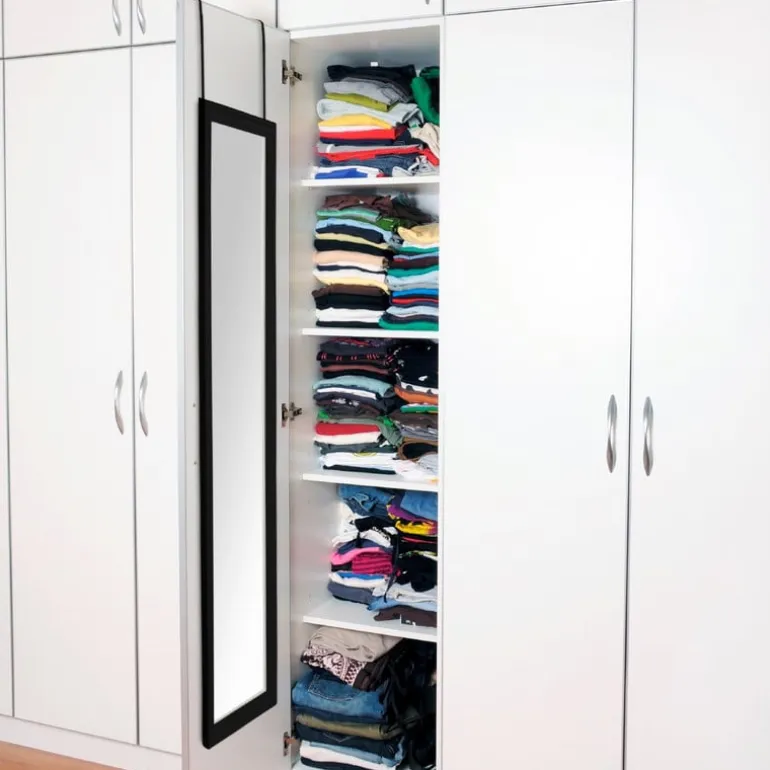 Creëer ruimte en stijl in je interieur met deze elegante deurspiegel! Dankzij zijn functionele design hang je de spiegel gemakkelijk op aan de slaapkamer- of kastdeur, waardoor je altijd je outfit kan checken voordat je de deur uitgaat. De zwarte lijst geeft een moderne en strakke uitstraling die moeiteloos past bij elke woonstijl. Deze ruimtebesparende spiegel hang je met twee haken aan de deur, zonder gedoe met boren of schroeven.