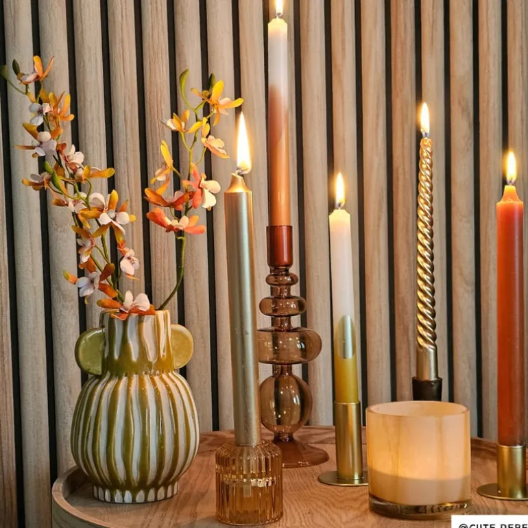 Een theelichthouder en kandelaar in 1; hoe handig is dat! Deze veelzijdige diner/theelichthouder is gemaakt van glas en heeft een gele kleur. De afmeting van deze houder is ø5.5×6 cm en kan zowel als theelichthouder en als kandelaar worden gebruikt. Dus of je nu een romantisch diner hebt gepland, een ontspannend bad wil nemen of gewoon wat extra sfeer wilt toevoegen aan je interieur, deze veelzijdige kandelaar past perfect bij elke gelegenheid.